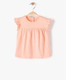 Tee-shirt bébé fille sans manches avec dentelle et liseré pailleté rose