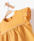 Tee-shirt bébé fille sans manches avec dentelle et liseré pailleté jaune fonce