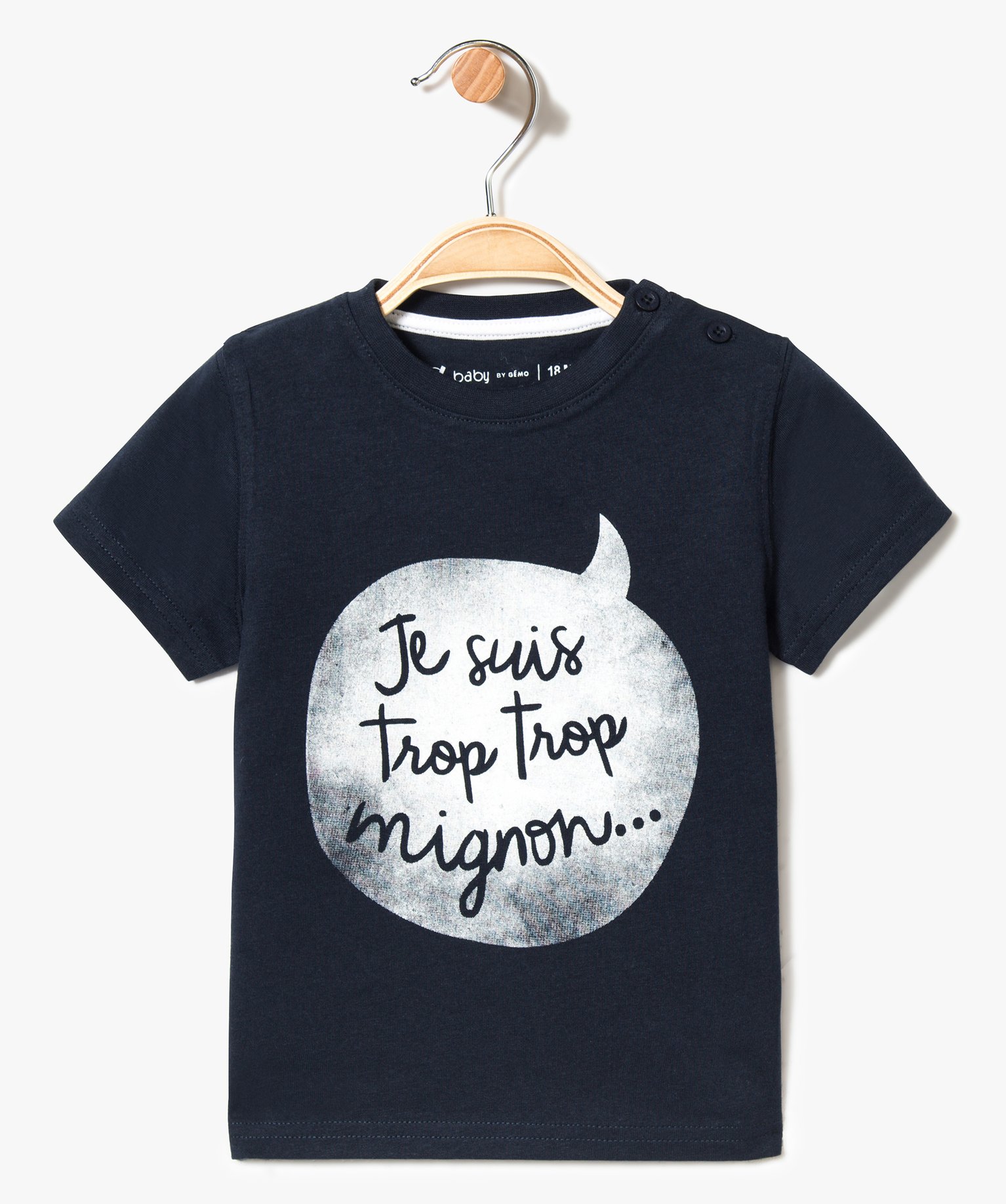 Tee-shirt bébé garçon à manches courtes et grand motif devant marine