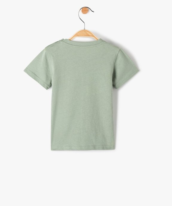 On craque pour ce joli tee-shirt bébé garçon avec message contrastant sur le buste. Un message plein de bonnes intentions qui plaira à toute la famille ! Ce tee-shirt à manches courtes est composé de coton pour un contact doux sur la peau de bébé. Il possède un col rond et deux boutons sur l’épaule pour faciliter l’habillage. Un tee-shirt à message à marier avec un bermuda ou un short et des sandales.