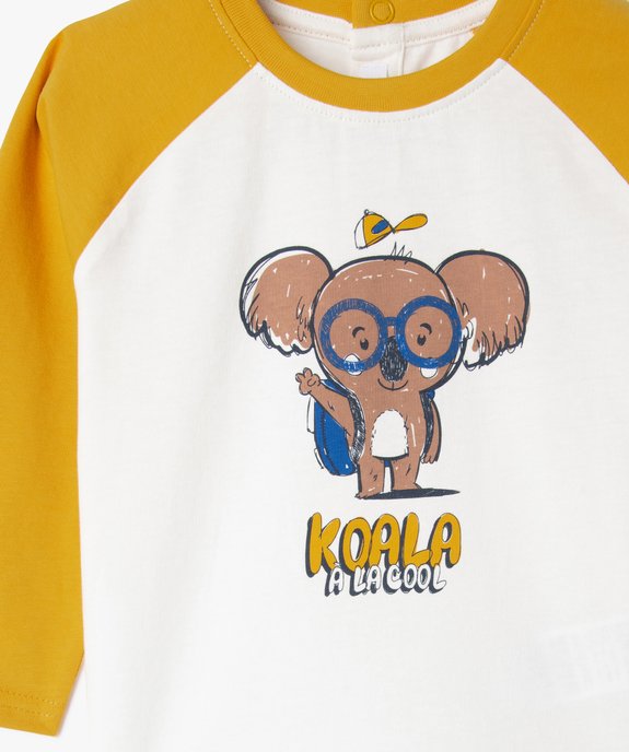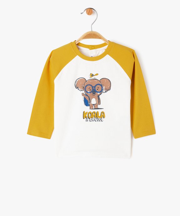 Tee-shirt bicolore avec motif animal bébé garçon jaune