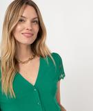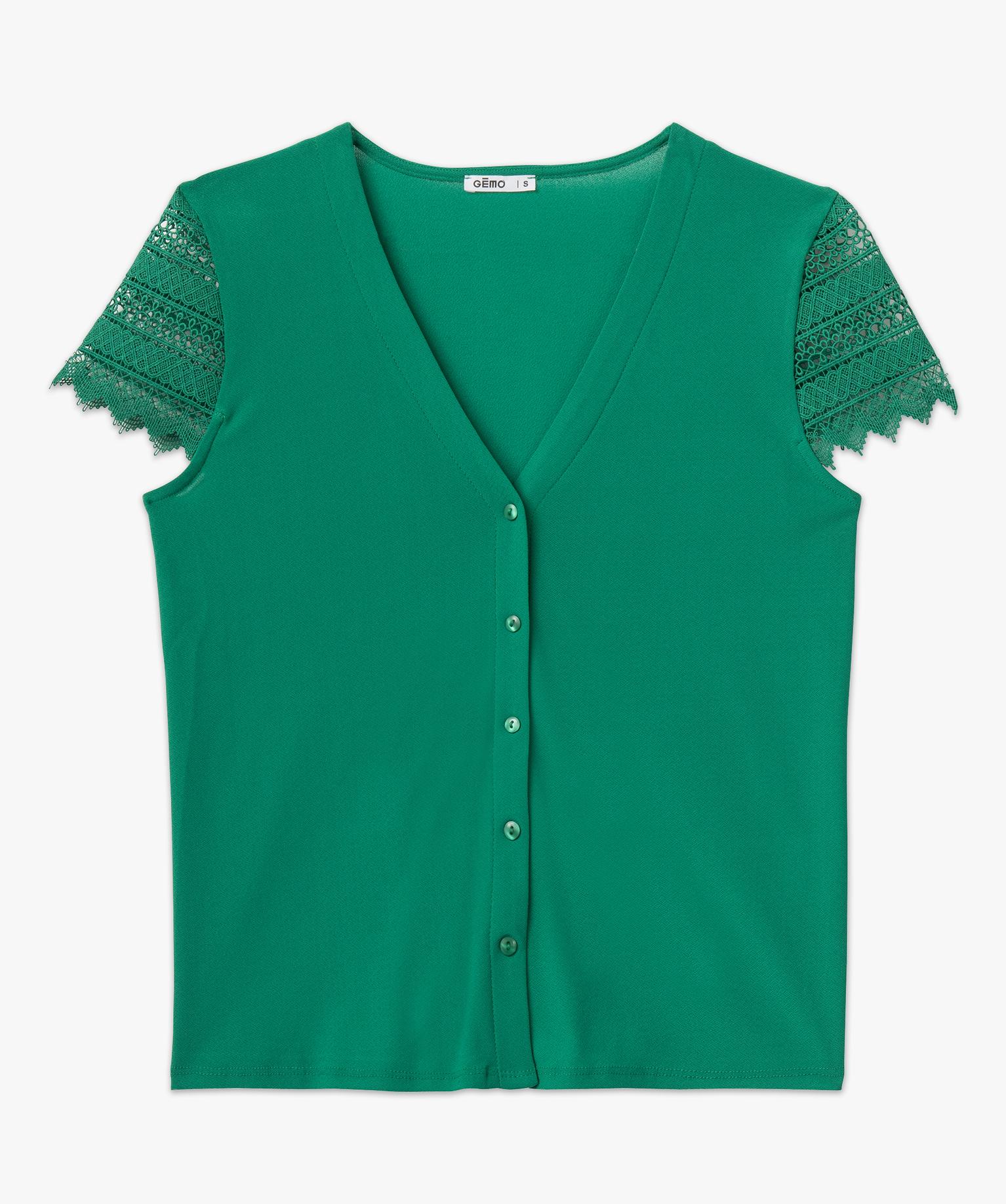 Tee-shirt boutonné à manches courtes en dentelle femme vert
