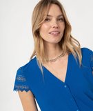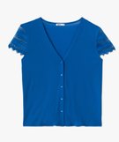 Tee-shirt boutonné à manches courtes en dentelle femme bleu