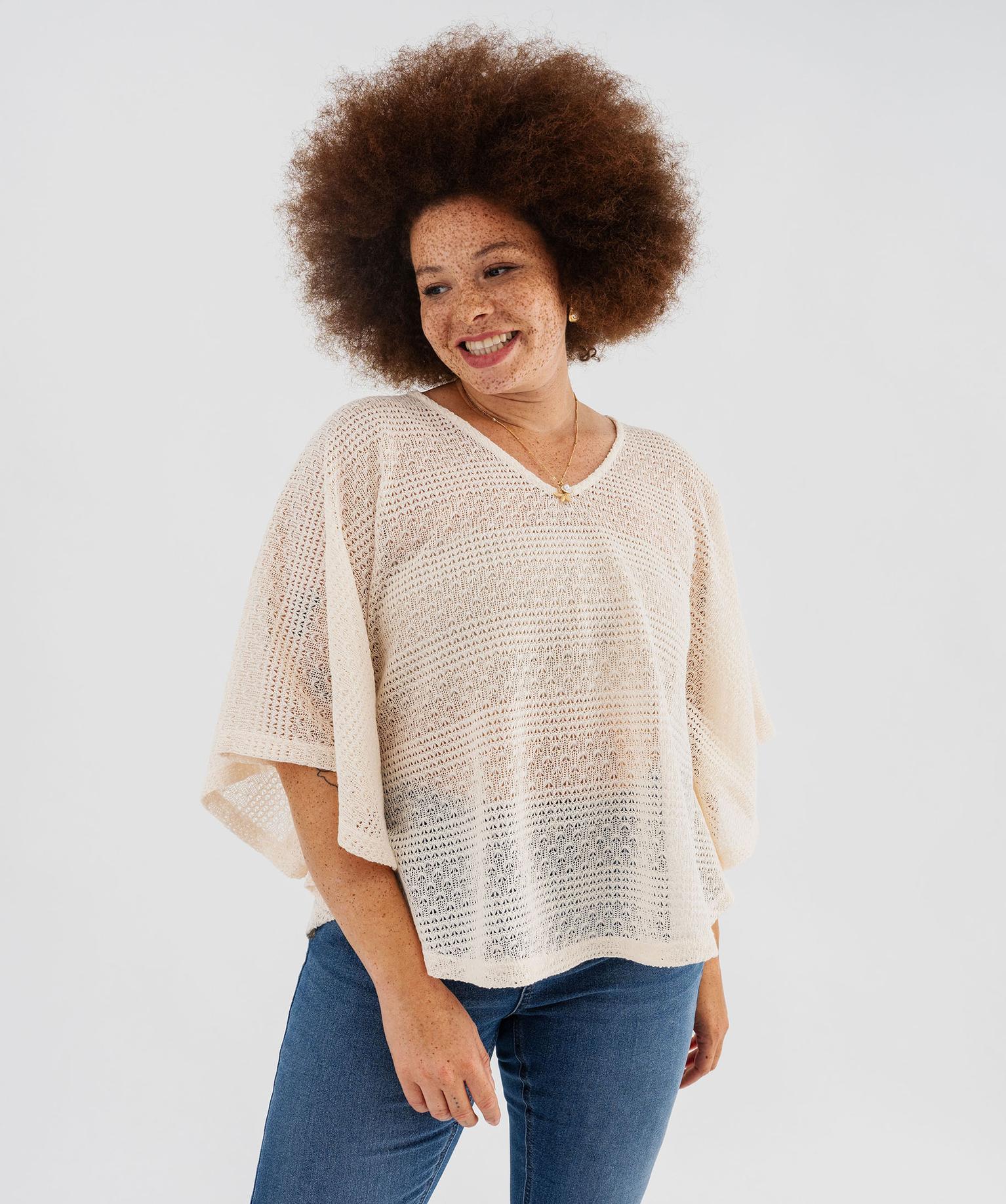 Tee-shirt cape en maille ajourée femme grande taille ecru