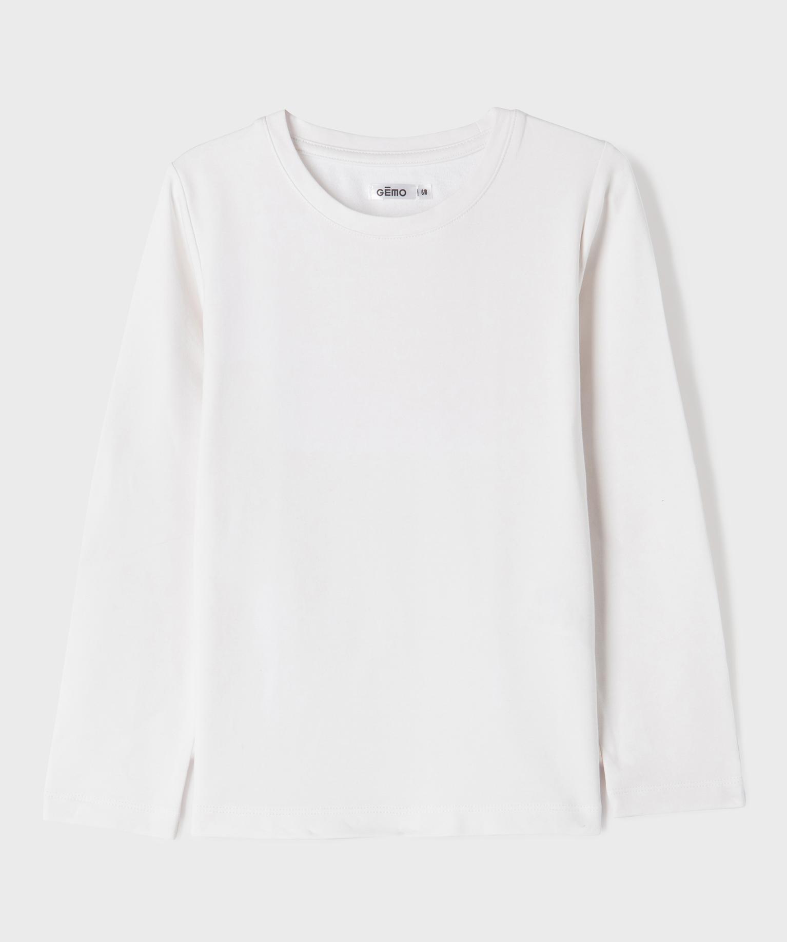 Tee-shirt chaud à manches longues et col rond mixte blanc