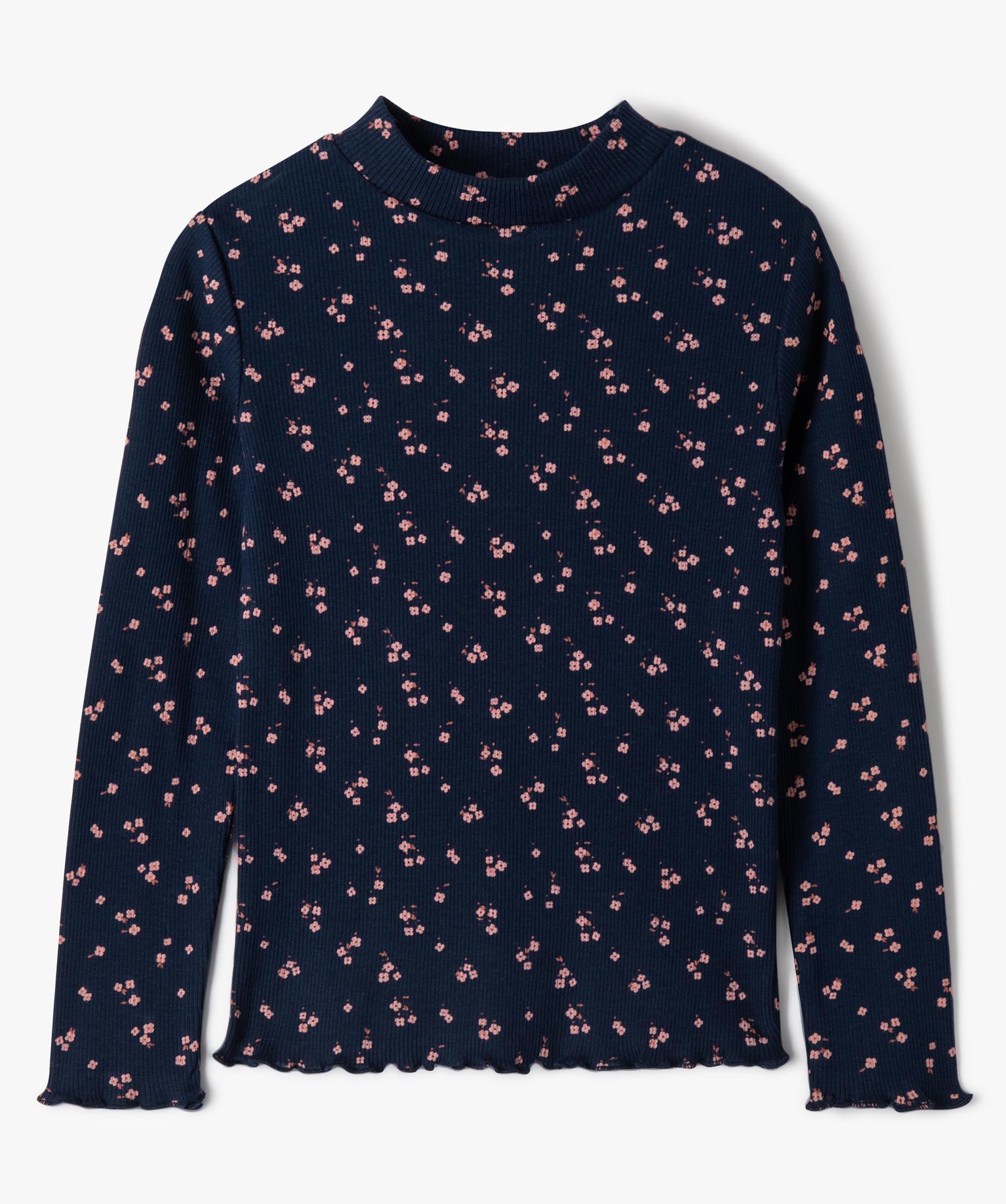 Tee-shirt côtelé à manches longues fille navy