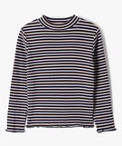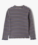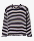 Craquez pour ce ravissant tee-shirt à manches longues. Confectionné dans une maille côtelée confortable, il affiche de jolis motifs multicolores (rayures ou petites fleurs en fonction des coloris) et d’adorables finitions froncées dans le bas et aux poignets, qui lui confèrent une allure pleine de charme. Ce tee-shirt fille possède un petit col montant. Il se porte avec l’ensemble du vestiaire : jupe, pantalon, jean, salopette, tout lui va ! Ce tee-shirt en maille côtelée est un véritable atout mode dans la garde-robe des filles.