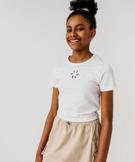 Tee-shirt court à manches courtes avec motif ajouré fille ecru