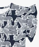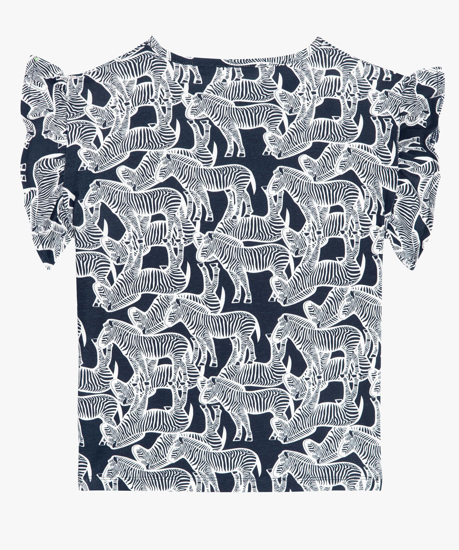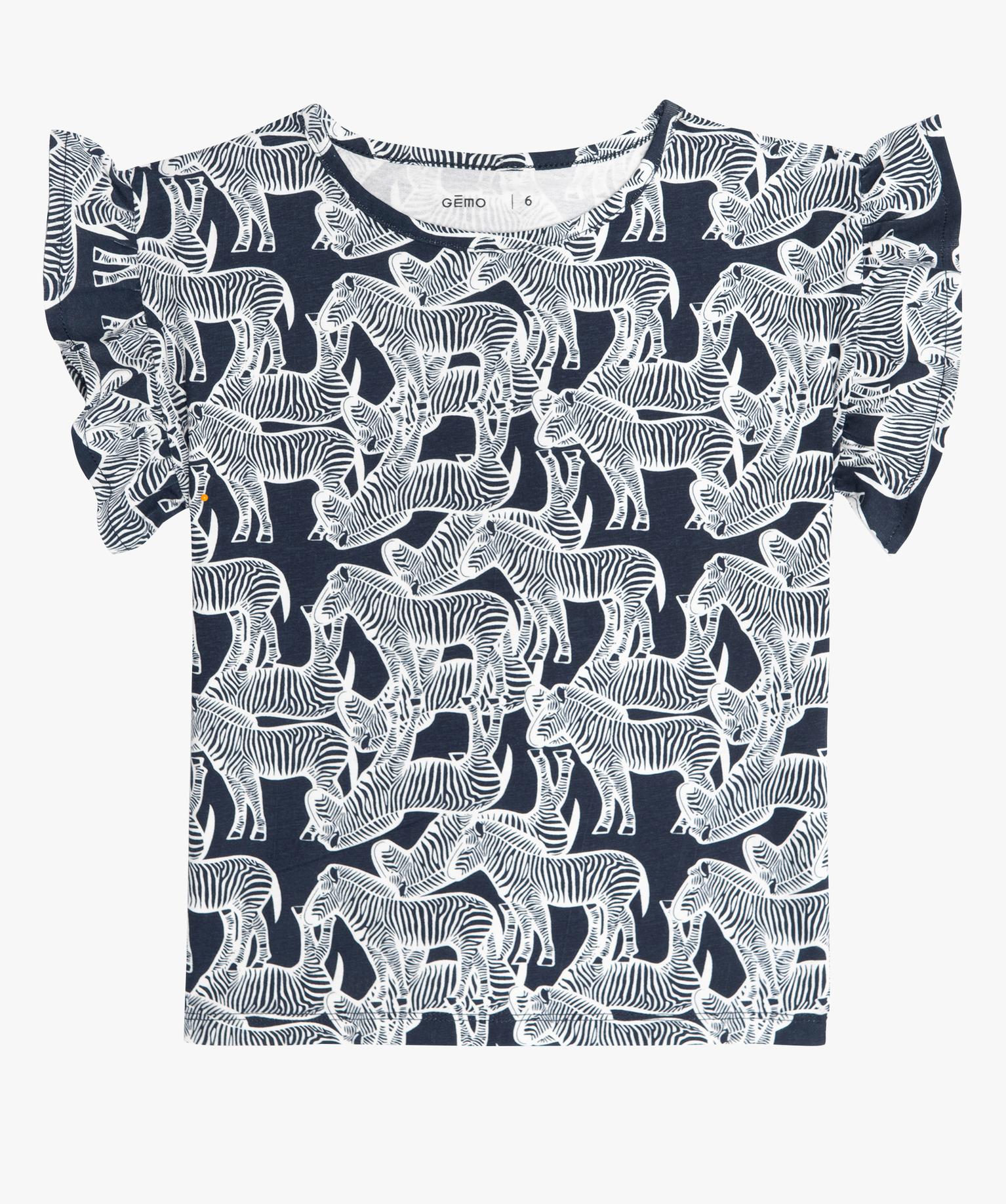 Tee-shirt court fille imprimé avec manches courtes volantées bleu fonce