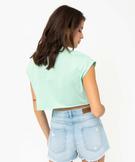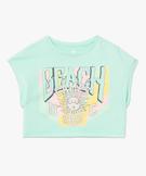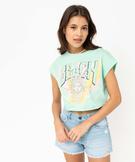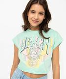 La marque du sportswear d'inspiration vintage Camps United signe ici un tee-shirt femme très mode ! Le tee-shirt sans manches affiche une coupe crop top, large et courte, à porter seul avec une jean taille haute ou par-dessus un body ou une robe moulante pour une touche de fun. L'emmanchure tombante couvre le haut des bras avec un effet loose. Le tee-shirt est bien large et doté d'une finition bord-franc dans le bas pour une allure résolument décontractée. Col rond. Finition fin bord-côte aux col et aux emmanchures. Grand motif patiné sur l'avant. Dos uni.