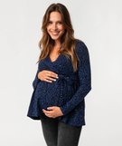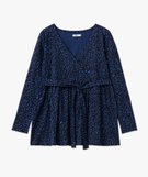 Offrez-vous un look tendance pendant votre grossesse et même après grâce à ce tee-shirt de grossesse à manches longues à motifs tachetés. Un tee-shirt qui permet de mettre la silhouette en valeur grâce à un décolleté cache-coeur, un bas ample qui vient recouvrir le ventre et une ceinture ton sur ton cousue sur les côtés. Il est agrémenté de petites fronces sur les épaules. Un tee-shirt également compatible avec l’allaitement. Il se porte avec un leggings de grossesse comme avec un jean slim.