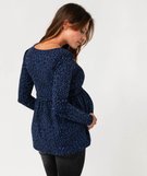 Tee-shirt de grossesse à manches longues compatible allaitement bleu fonce