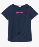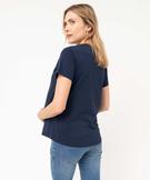 Élégant tee-shirt de grossesse et d'allaitement à manches courtes en jersey de coton. Le tee-shirt ample possède 2 pans croisés sur l'avant, qui s'ouvrent sur un fond échancré, destiné à faciliter la mise au sein. Son décolleté rond et dégagé est discret et plein de charme. Le tee-shirt d'allaitement accompagne l’évolution de votre ventre avec douceur, confort et raffinement. Un top de maternité en coton idéal pour accompagner un jean slim ou un pantalon en coton.