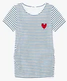 Tee-shirt de grossesse imprimé à manches courtes avec appliqué cœur en velours blanc