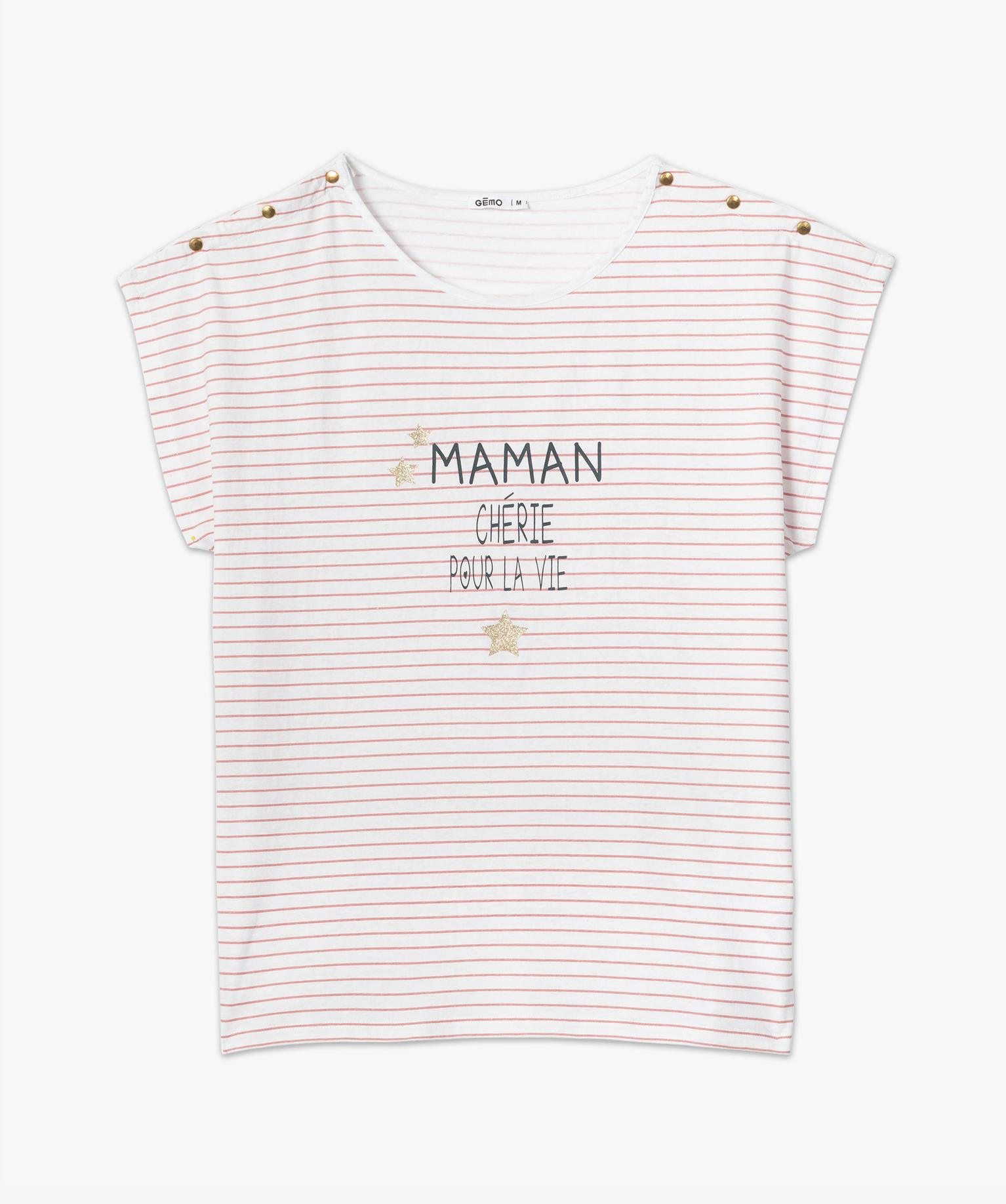 Tee-shirt de grossesse rayé avec message compatible allaitement blanc chine