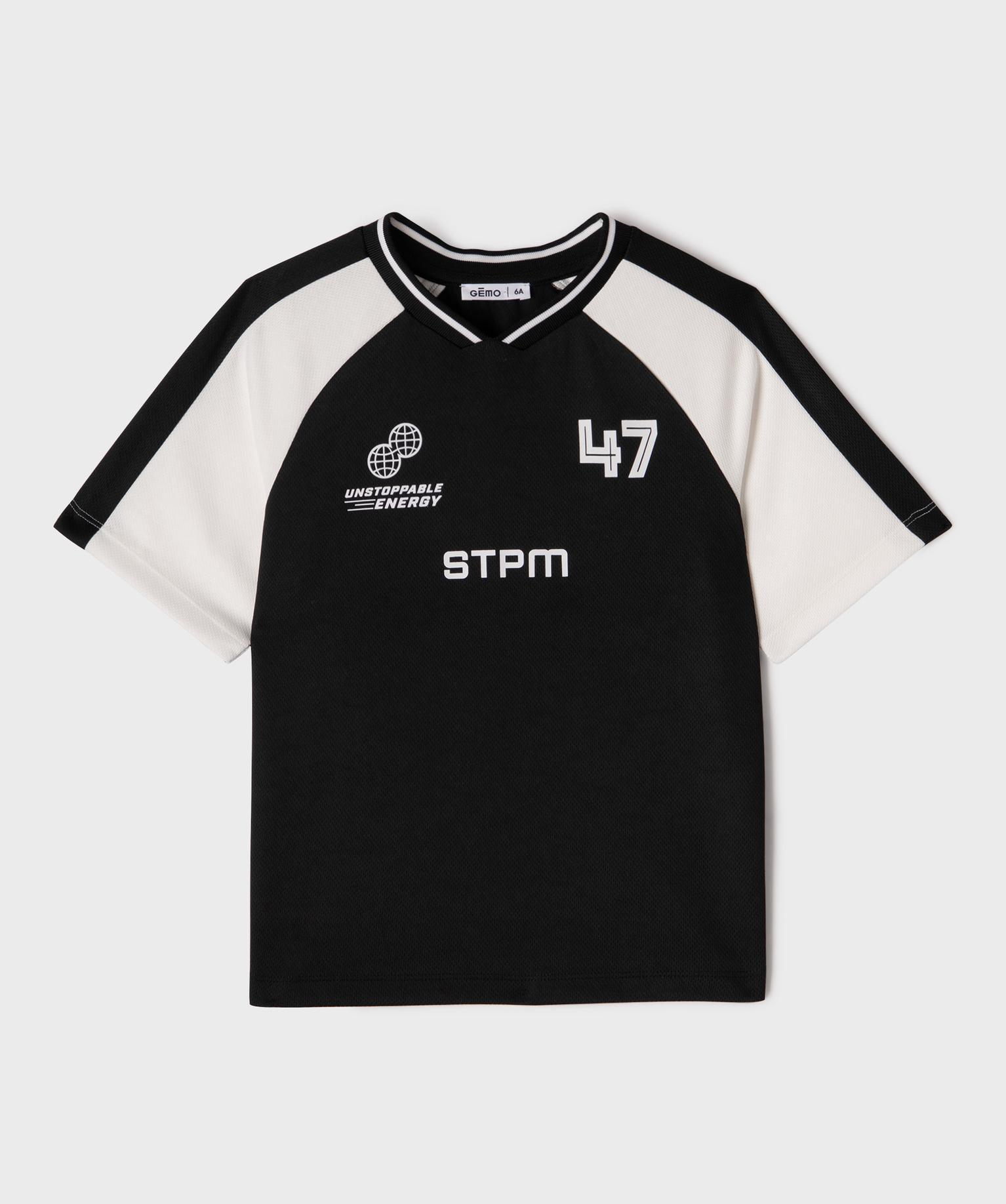 Tee-shirt de sport à manches courtes avec inscriptions garçon noir