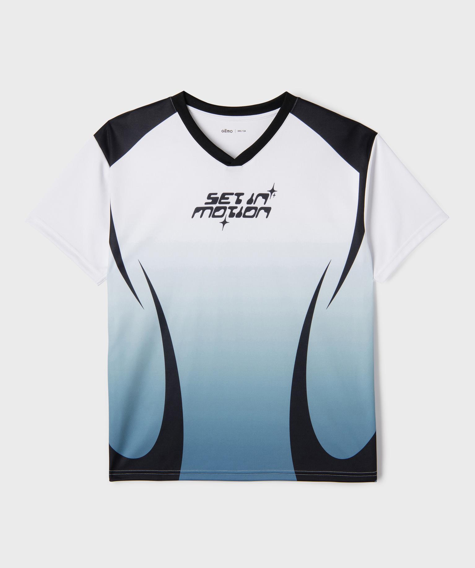 Allure dynamique assurée pour les jeunes sportifs avec ce tee-shirt de sport à manches courtes. Un modèle fluide et confortable confectionné en mesh respirant, idéal pour rester au frais pendant l’effort. Ce tee-shirt de sport ado garçon affiche un dégradé de couleurs sur la partie basse, des lignes graphiques et une inscription sur la poitrine. Il possède un col V en bord-côte élastique très confortable. Un tee-shirt à associer à un short de sport et des baskets. Dos uni.