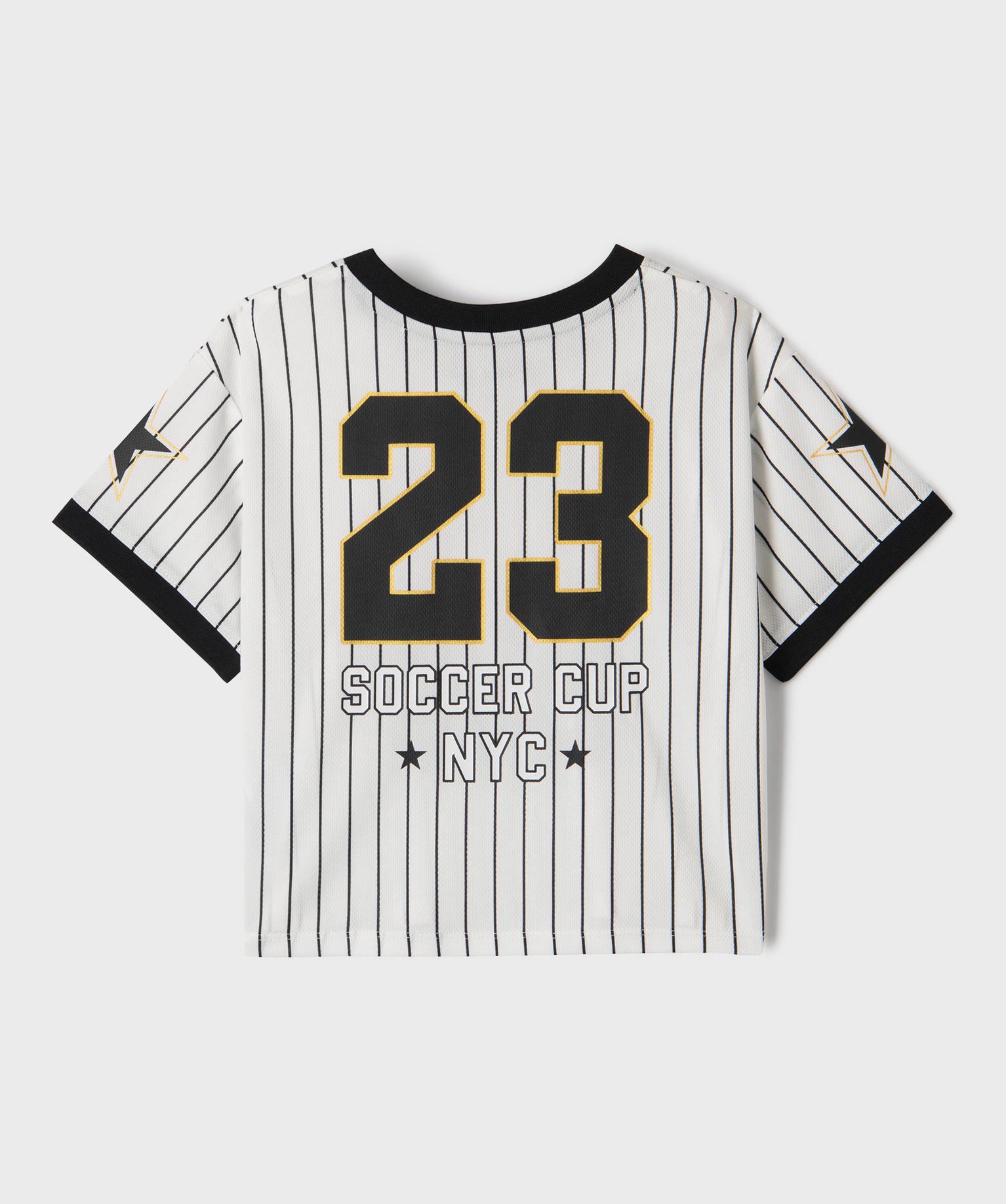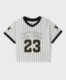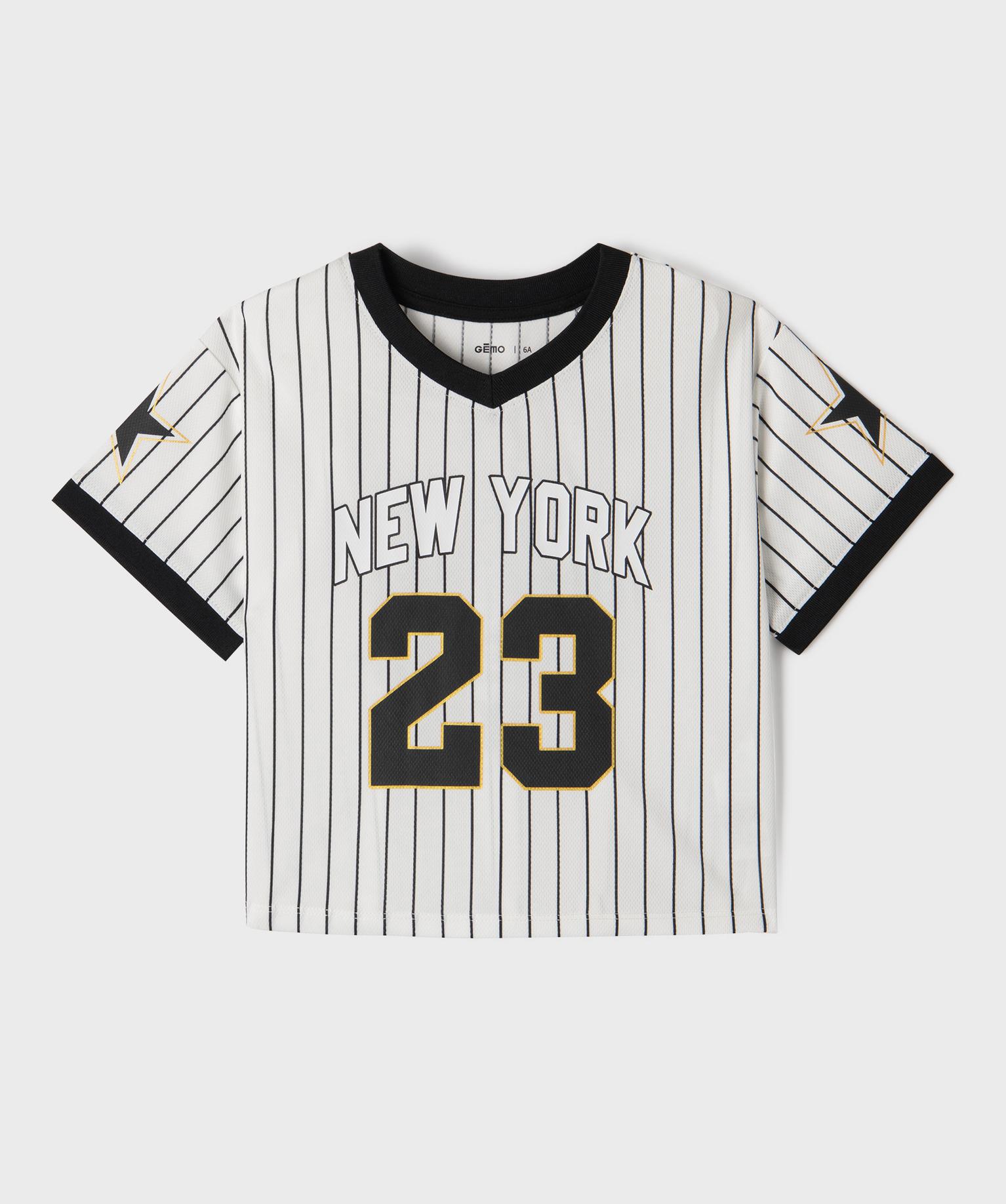 Ce tee-shirt de sport pour fille est fabriqué dans une matière légère et respirante. Il assure un confort optimal à votre enfant pendant ses activités physiques comme au quotidien. Son col V et ses manches sont sublimés par une finition bord-côte élastique inspiré des maillots de football américain. De même que son imprimé devant et dos. Plein de caractère et dans l'air du temps, le tee-shirt manches courtes affiche une coupe courte façon crop top.