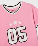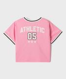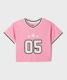 Ce tee-shirt de sport pour fille est fabriqué dans une matière légère et respirante. Il assure un confort optimal à votre enfant pendant ses activités physiques comme au quotidien. Son col V et ses manches sont sublimés par une finition bord-côte élastique inspiré des maillots de football américain. De même que son imprimé devant et dos. Plein de caractère et dans l'air du temps, le tee-shirt manches courtes affiche une coupe courte façon crop top.