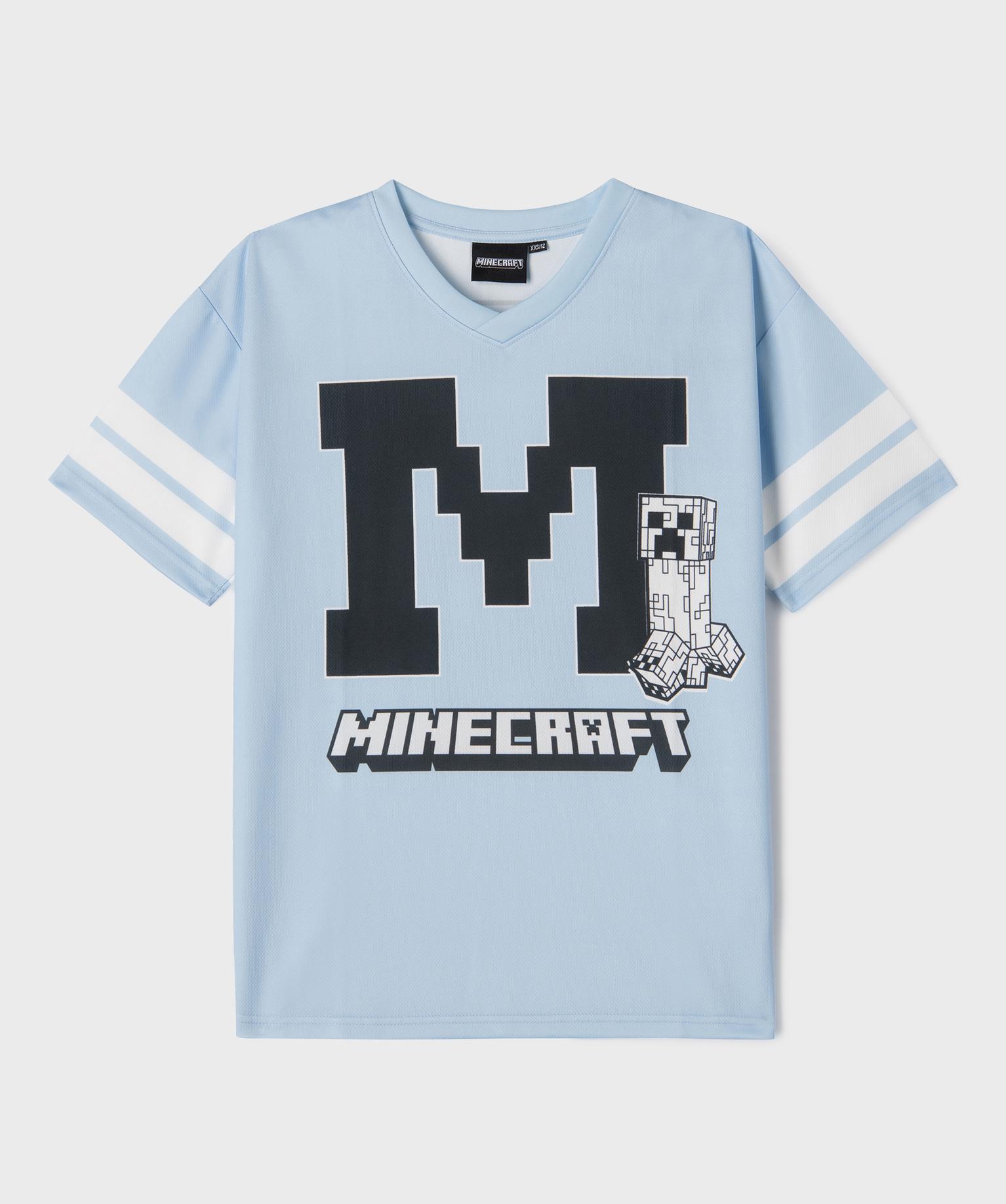 Ce tee-shirt garçon en maille respirante reprend le style d’un maillot de hockey avec sa coupe ample, son col V et ses rayures sur les manches. Les grands imprimés Minecraft devant et au dos apportent une touche ludique et dynamique. Un tee-shirt manches courtes courtes idéal pour les sportifs ou amateurs de looks streetwear et aussi fans du jeu vidéo !