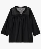 Tee-shirt droit manches 3/4 à col boutonné femme grande taille noir