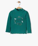 Tee-shirt en maille côtelée à col montant bébé fille vert