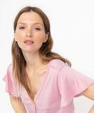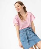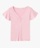 Un tee-shirt à manches courtes particulièrement élégant avec son col V prolongé par trois petits boutons fantaisie. Ce tee-shirt femme possède des manches flottantes et est agrémenté de petits liserés pailletés sur l’avant des épaules. Un top élégant confectionné dans une matière fluide ultra confortable en saison estivale. Il se porte avec tous les bas du vestiaire.