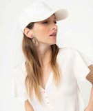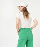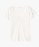 Tee-shirt femme à col V et manches volantées blanc chine
