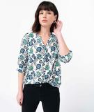 Ce tee-shirt imprimé aux allures de blouse apportera une touche d’élégance à toutes les tenues. Ce tee-shirt femme plein de charme doté d’un col froncé avec ouverture en V et plis creux pour plus d’aisance. Un tee-shirt éco-responsable confectionné en polyester recyclé. Manches 3/4 terminées par un biais.