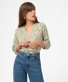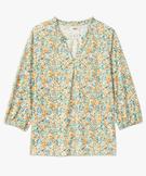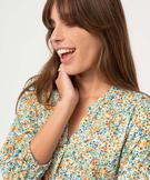 Ce tee-shirt imprimé aux allures de blouse apportera une touche d’élégance à toutes les tenues. Ce tee-shirt femme plein de charme doté d’un col froncé avec ouverture en V et plis creux pour plus d’aisance. Un tee-shirt éco-responsable confectionné en polyester recyclé. Manches 3/4 terminées par un biais.