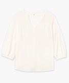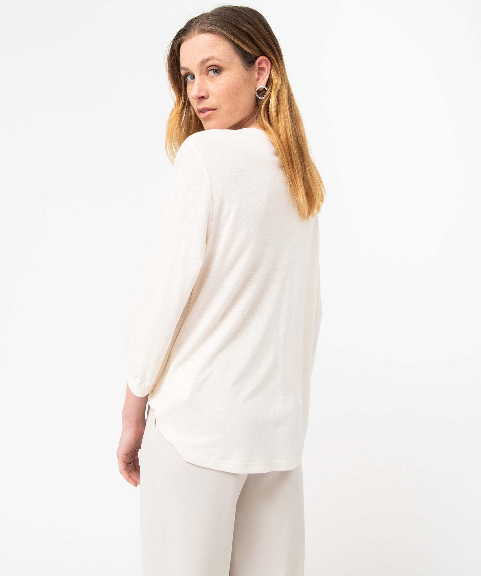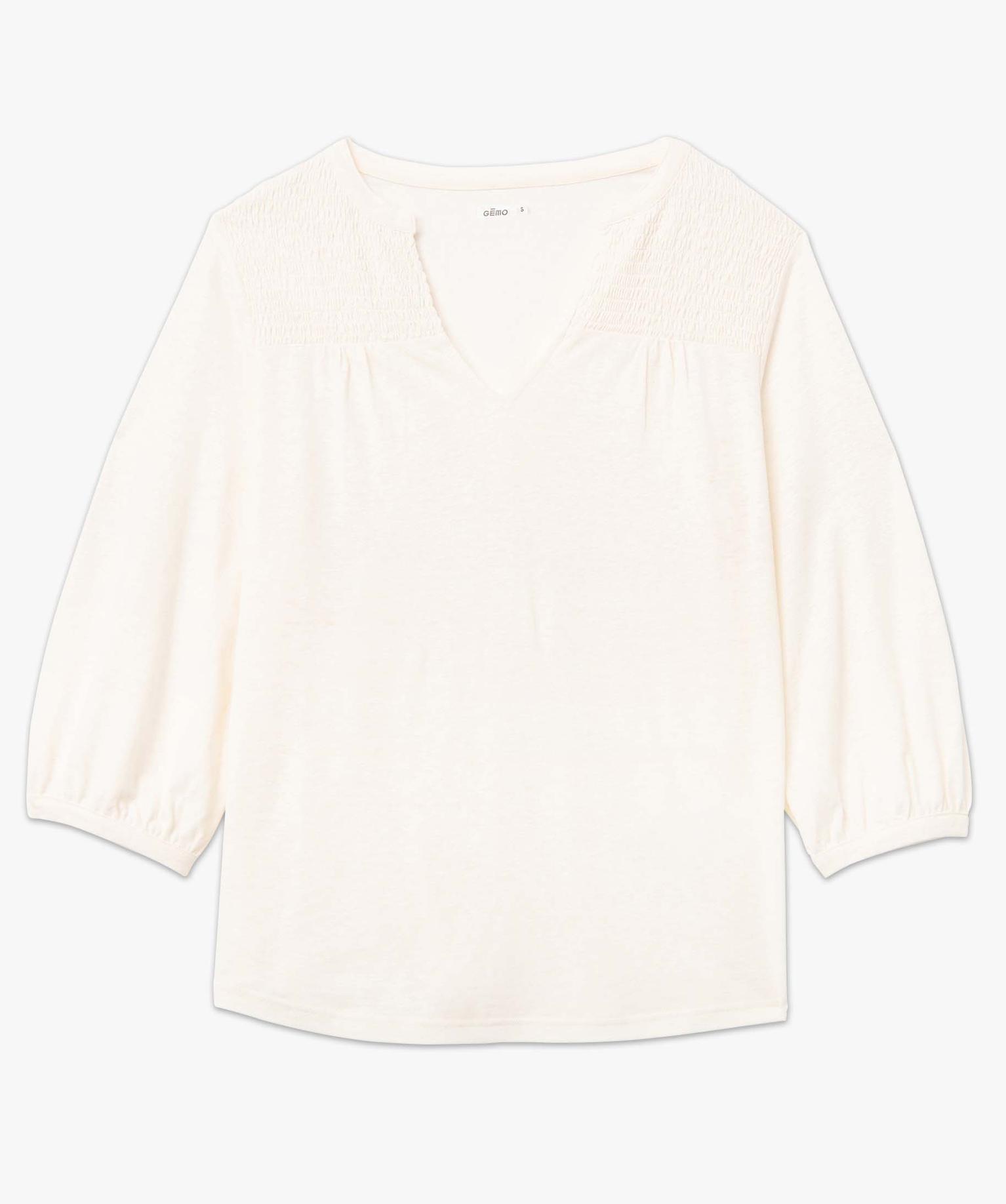 Tee-shirt femme à manches 3/4 avec smocks sur le buste blanc chine