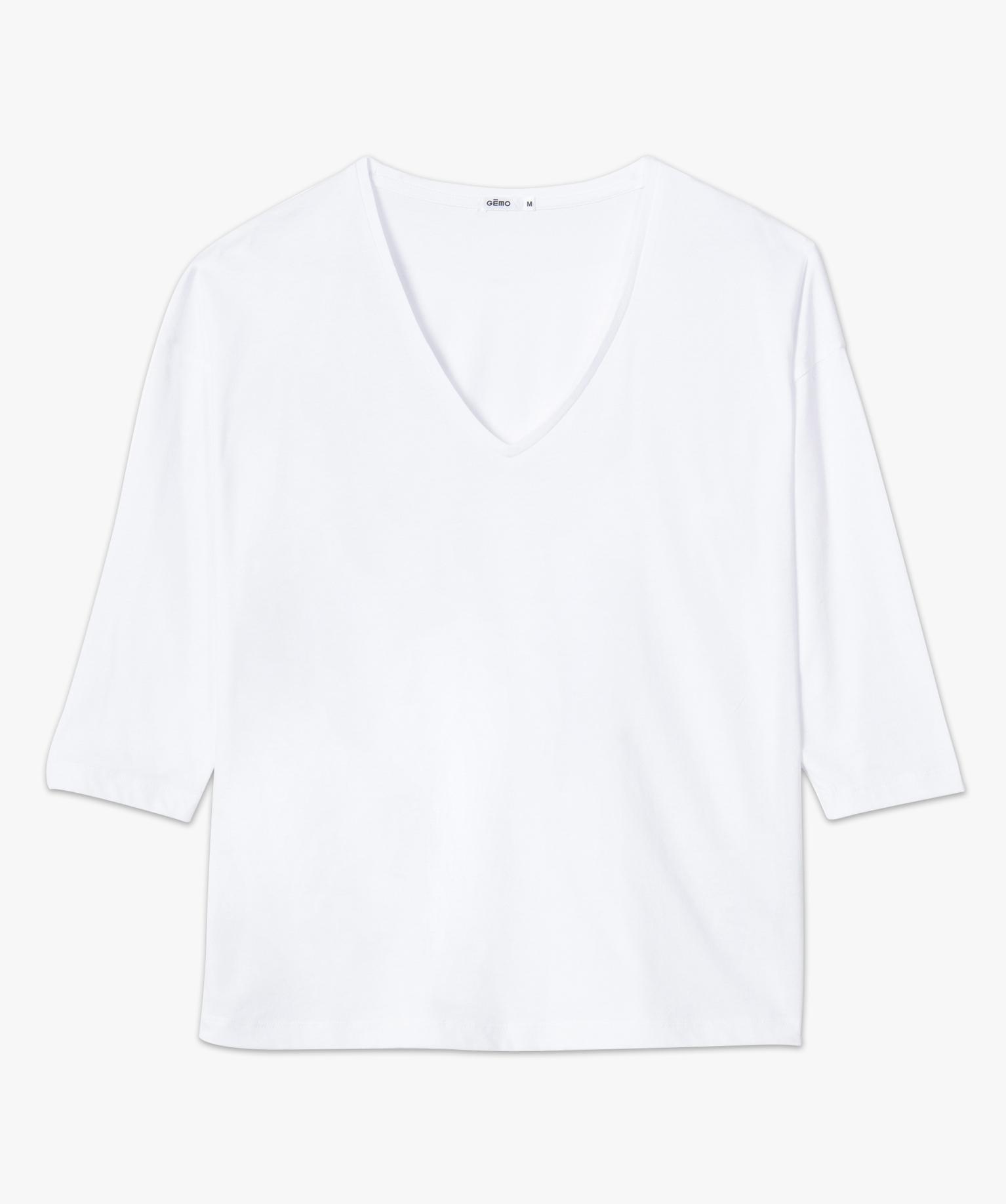 Tee-shirt femme à manches ¾ col V blanc