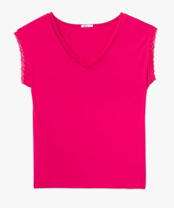 Tee-shirt femme à manches courtes avec col V en dentelle rose fonce