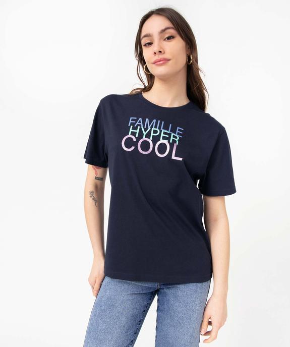 Tee-shirt femme à manches courtes avec message pailleté navy