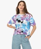 Vous allez adorer le style vintage de ce tee-shirt à manches courtes et col rond. Décliné dans un coloris effet tie and dye, il est inspiré de la mode des années 90 et affiche l'adorable Stitch, héros du film Lilo et Stitch, en format XXL. Ce tee-shirt femme à la coupe ample s’intégrera à merveille dans un look décontracté avec un jean et des baskets. Un tee-shirt Disney à collectionner !