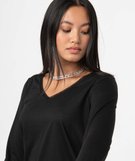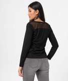 Tee-shirt femme à manches longues avec tulle dans le haut du dos noir