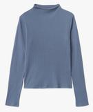 Tee-shirt femme à manches longues en maille côtelée ajourée bleu
