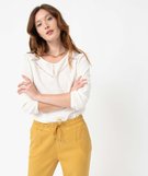 Tee-shirt femme à manches longues en maille texturée blanc chine