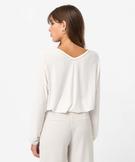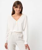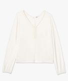 Tee-shirt femme à manches longues et encolure fantaisie blanc chine