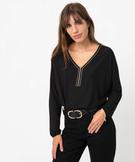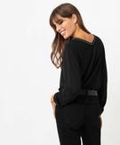 Tee-shirt femme à manches longues et encolure fantaisie noir