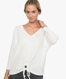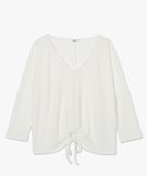 Tee-shirt femme ample à manches 3/4 et lacet à nouer ecru