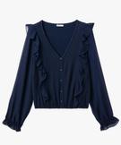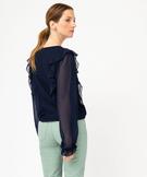 Tee-shirt femme avec manches en voile et volants bleu fonce