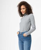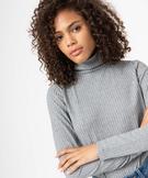 Tee-shirt femme en maille côtelée manches longues et col montant multicouleur