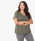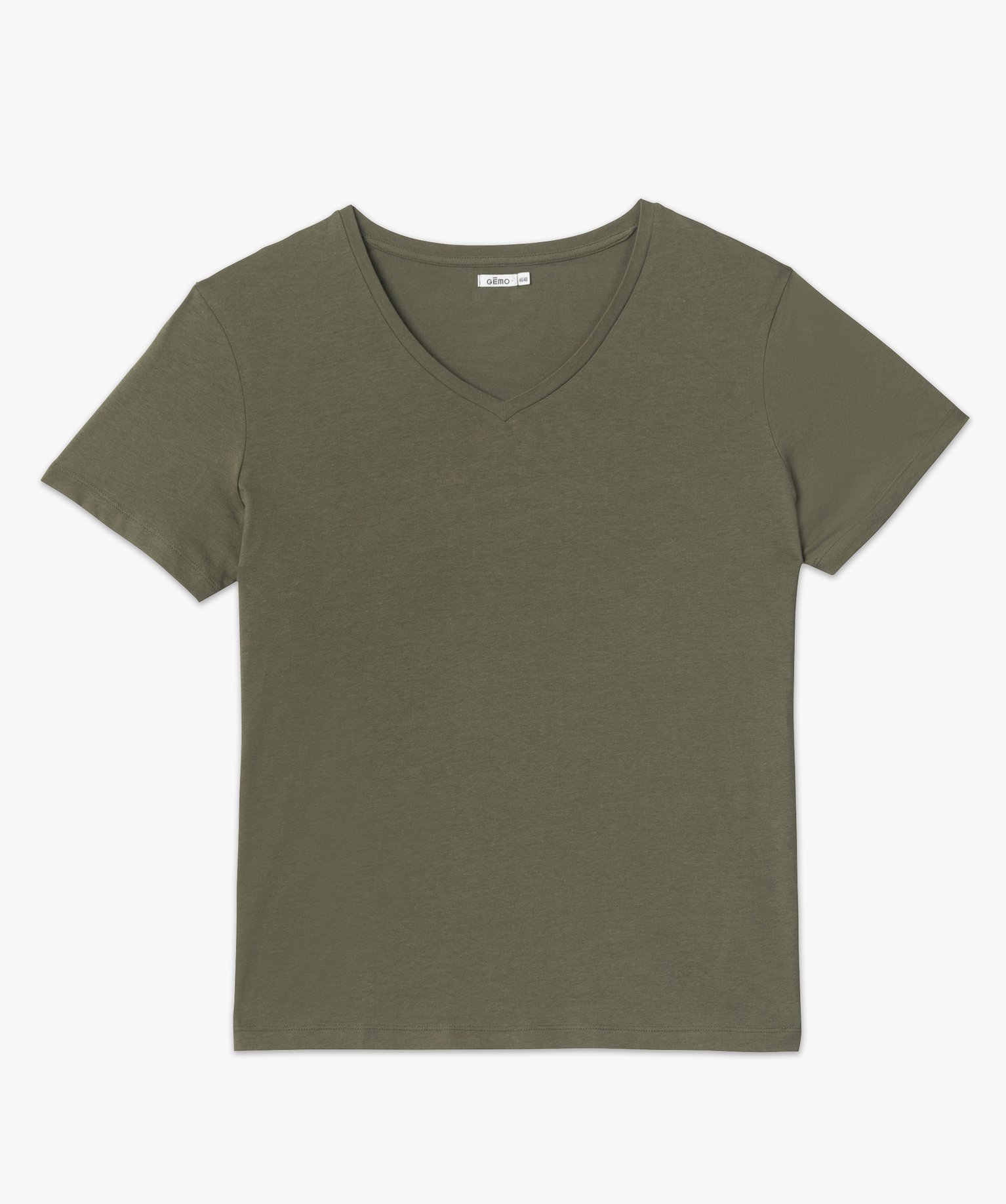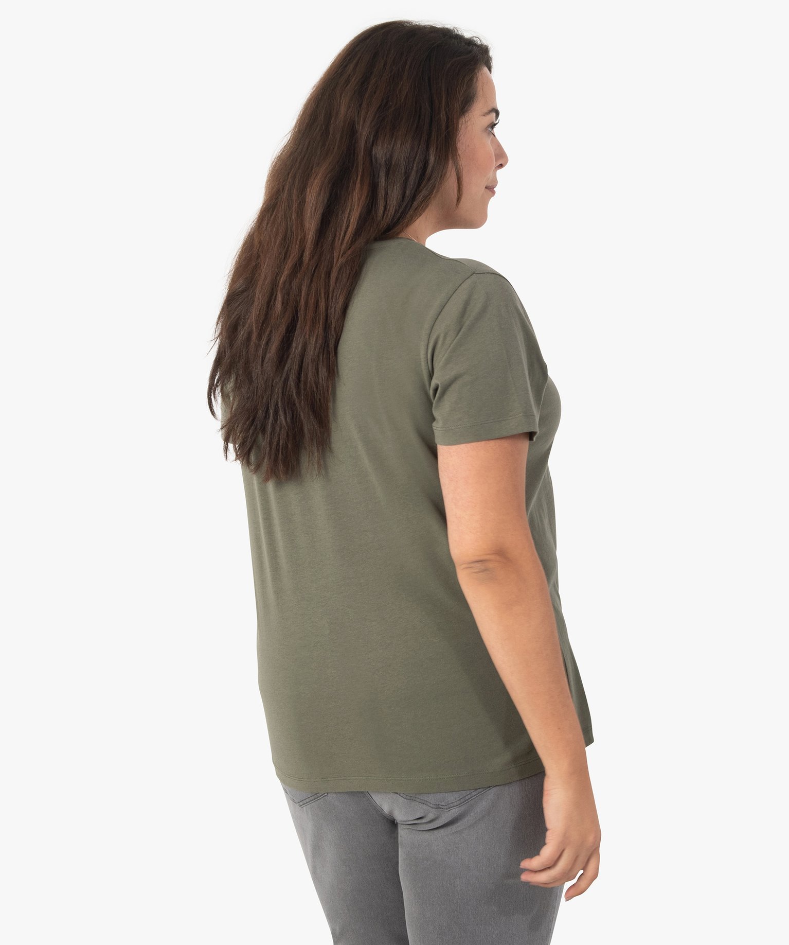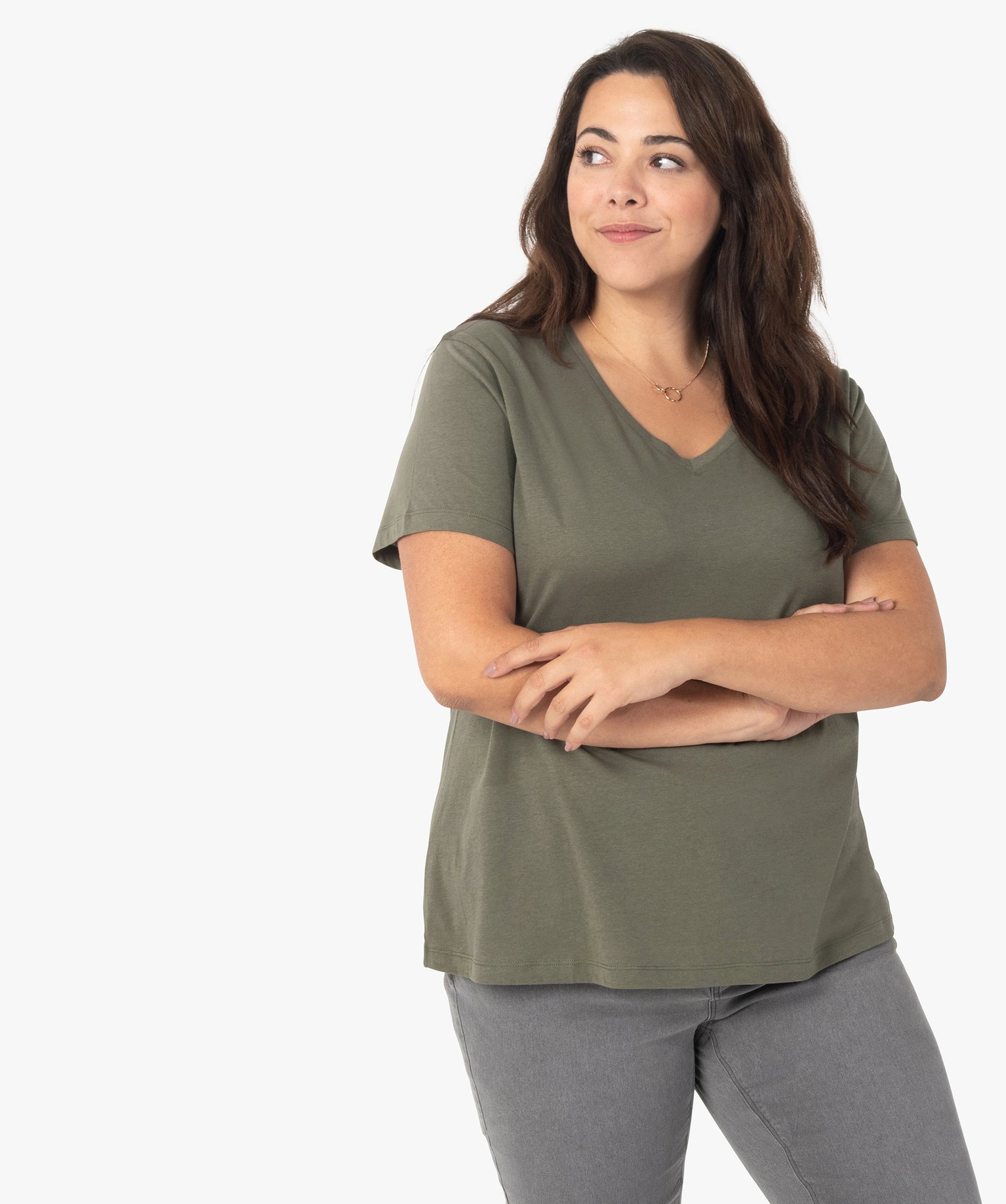 Tee-shirt femme grande taille à col V et manches courtes kaki