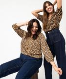 Tee-shirt femme grande taille à manches 3/4 imprimé marron