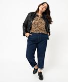 Bel esprit blouse pour ce tee-shirt pour femme grande taille (du 46/48 au 54/56) imprimé : motif all over, manches 3/4 bouffantes, petit col froncé avec ouverture boutonnée, coupe ample, matière fluide. Un haut facile à coordonner avec tous les bas du dressing. Vous apprécierez tout particulièrement l'imprimé de ce tee-shirt, ainsi que le détail de l'encolure V terminée par des boutons dorés. Bas de manches élastiqués. 3 boutons. Fronces poitrine.
