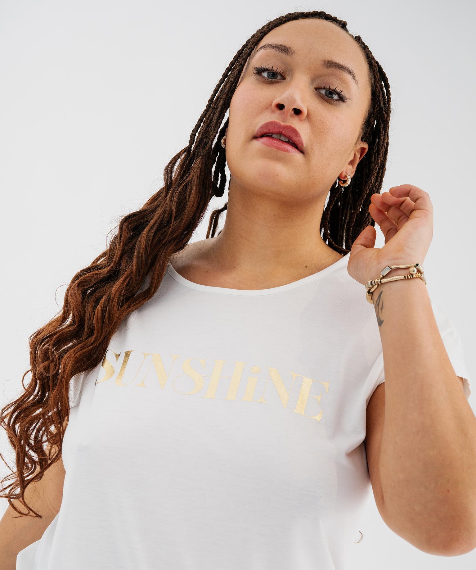 Tee-shirt femme grande taille à manches courtes avec motifs blanc