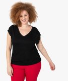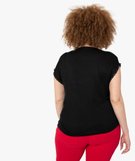 Tee-shirt femme grande taille à manches courtes et col V et dentelle noir