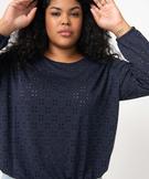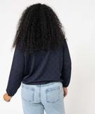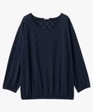 Tee-shirt femme grande taille ajouré à manches 3/4 bleu fonce