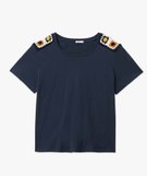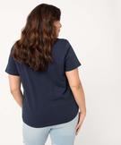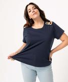 Tee-shirt femme grande taille avec épaules en crochet granny bleu fonce
